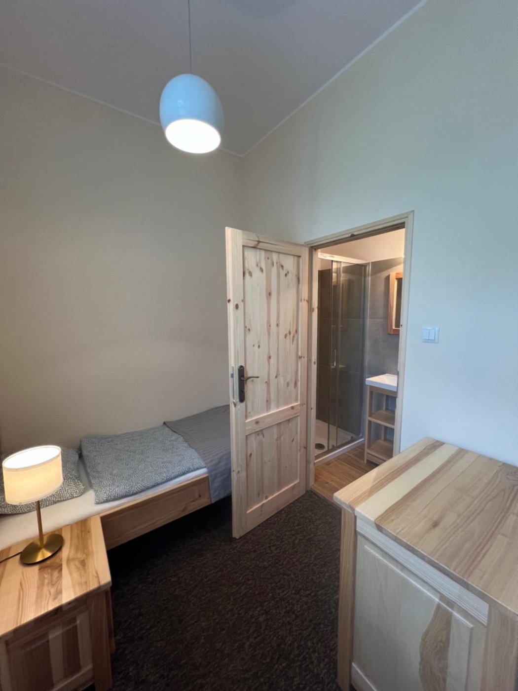 Pokój z 2 łóżkami pojedynczymi i prywatną łazienką poza pokojem. This twin room has a private bathroom, a wardrobe, heating as well as an outdoor dining area. The unit has 2 beds. Pokój z 2 łóżkami pojedynczymi - 2 osobowy. Powierzchnia pokoju ok.: 11 mkw. ;