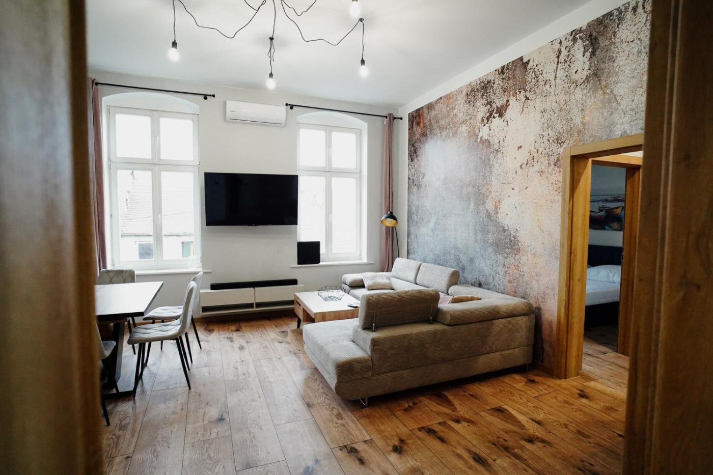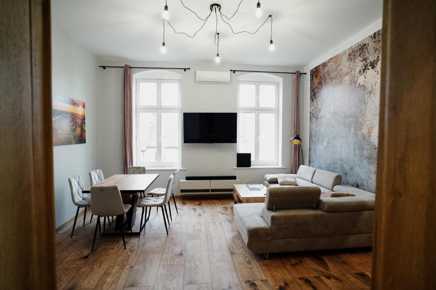 Apartament z 2 sypialniami. Boasting a private entrance, this air-conditioned apartment features 1 living room, 2 separate bedrooms and 1 bathroom with a bath and a shower. The fully equipped kitchen has a stovetop, a refrigerator, a dishwasher and kitchenware. The spacious apartment features a flat-screen TV, a washing machine, soundproof walls, a tea and coffee maker as well as city views. The unit has 3 beds. Apartament - 6 osobowy. Powierzchnia pokoju ok.: 70 mkw.