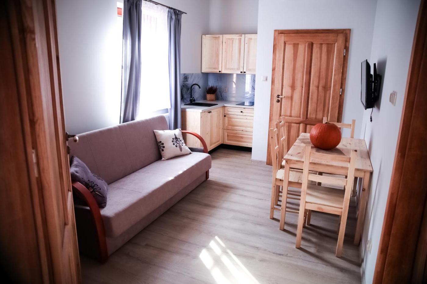 Pokój rodzinny. Providing free toiletries, this family room includes a private bathroom with a shower, a hairdryer and slippers. The well-fitted kitchenette features a stovetop, a refrigerator and kitchenware. The air-conditioned family room provides a flat-screen TV, soundproof walls, a tea and coffee maker, a seating area as well as mountain views. The unit offers 3 beds. Rodzinny - 4 osobowy. Powierzchnia pokoju ok.: 25 mkw. ;