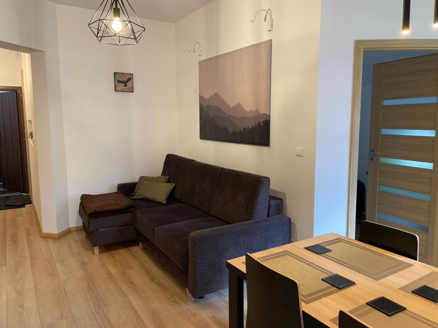 Apartament z 1 sypialnią. This apartment includes 1 living room, 1 separate bedroom and 1 bathroom with a shower and a hairdryer. The well-fitted kitchenette has a refrigerator, a dishwasher, kitchenware and a microwave. The apartment offers a coffee machine, a dining area, a wardrobe, a flat-screen TV with satellite channels, as well as a quiet street view. The unit has 2 beds. Apartament - 4 osobowy. Powierzchnia pokoju ok.: 37 mkw.