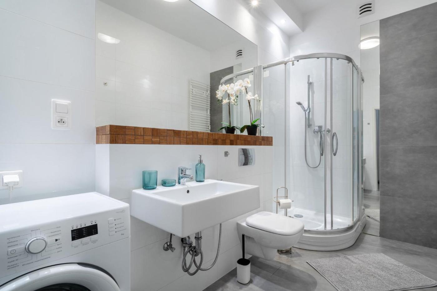 Apartament z 1 sypialnią. Boasting a private entrance, this apartment features 1 living room, 1 separate bedroom and 1 bathroom with a shower and a hairdryer. Meals can be prepared in the well-fitted kitchenette, which has a stovetop, a refrigerator, a dishwasher and kitchenware. The apartment features a flat-screen TV with cable channels, a washing machine, a tea and coffee maker, a seating area as well as city views. The unit has 2 beds. Apartament - 4 osobowy. Powierzchnia pokoju ok.: 42 mkw.